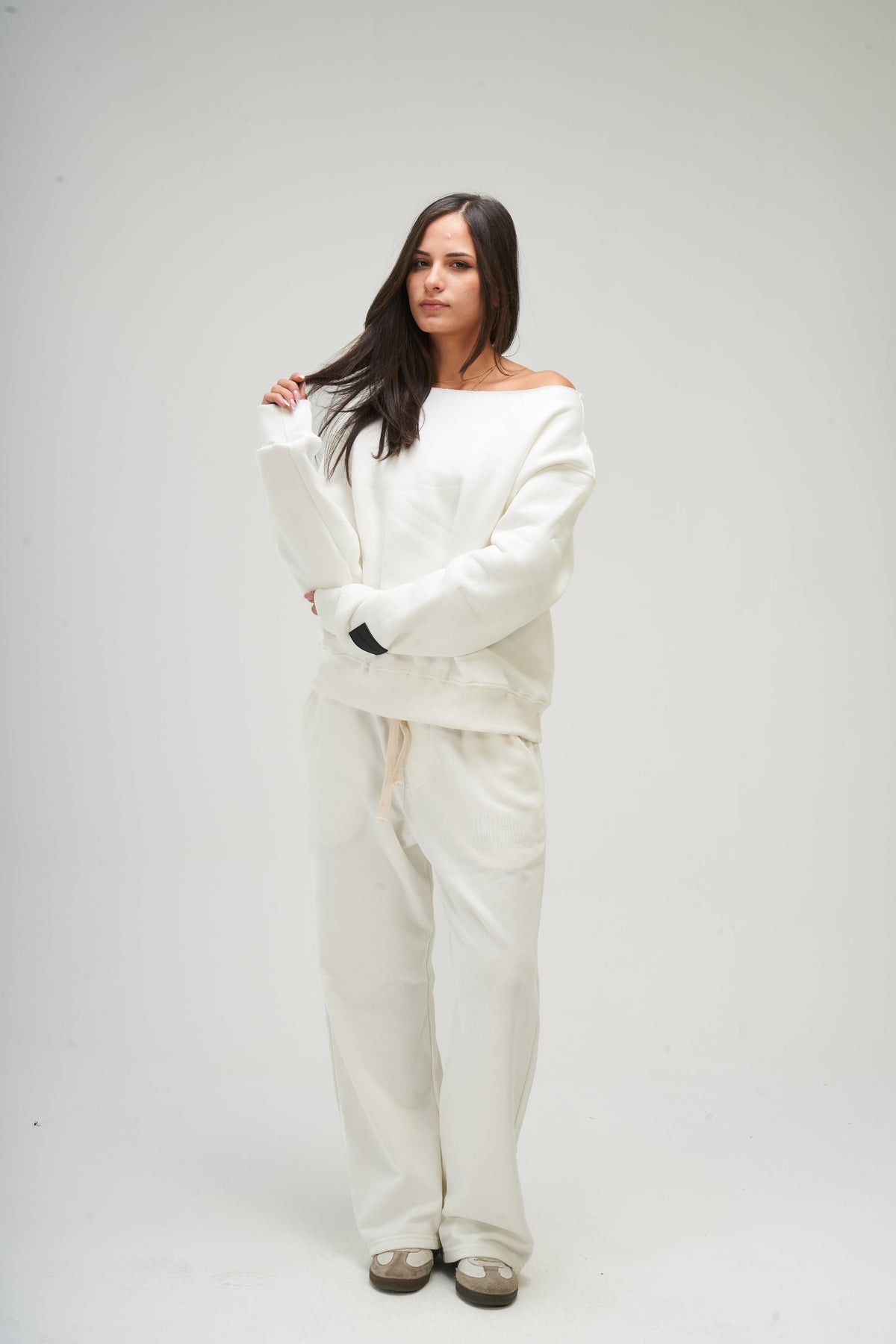Elevate your wardrobe with this striking white off-shoulder piece. The design features a clean, minimalist silhouette that gracefully exposes the shoulders for a modern, sophisticated look. Perfect for creating effortless elegance at casual gatherings or elevated occasions, this versatile garment transitions seamlessly from day to evening wear. The crisp white fabric provides a fresh, timeless foundation that pairs beautifully with virtually any accessory or layering piece. An essential addition for anyone seeking polished, contemporary style with understated charm.